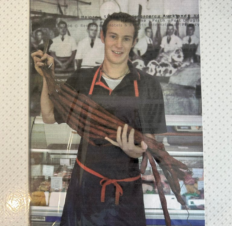 Dan started his apprenticeship in this very shop at age 15, then went on to gain experience in top butcheries in London and Melbourne before returning to Mangawhai to take over the shop from his parents in 2012.